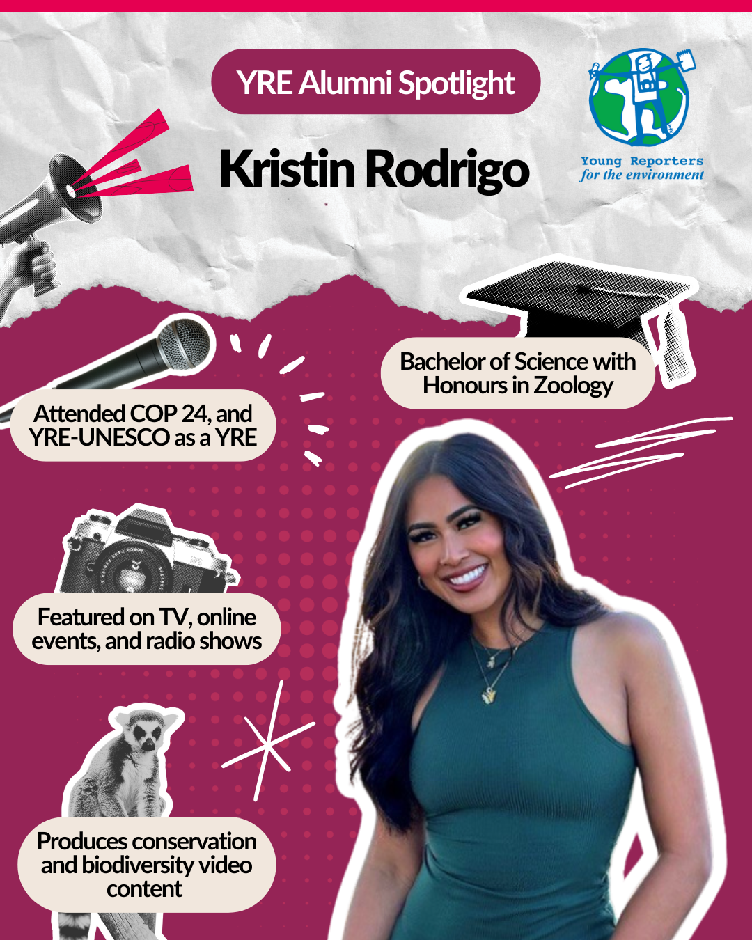 ““Whenever I reflect on the beginnings of my conservation journey, I think fondly of the experiences and opportunities YRE offered me. They shaped my foundation in science communication, strengthened my confidence as a speaker, and taught me how to navigate the world through meaningful connections. These skills have not only propelled my career forward, but also guided me toward becoming someone committed to creating a positive and lasting impact in the world.””